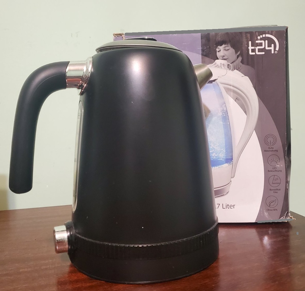![]() Електричний чайник зі світлодіодним підсвічуванням 1,7 літра, чорний чайник, диспенсер для гарячої води, електричний чайник 2200 Вт, сертифікований TÜV Rheinland GS Ціна - 550грн. ДЕТАЛЬНІШЕ... |